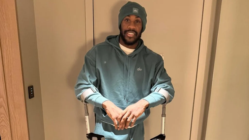 EXCLUSIVE: Η πρώτη φωτογραφία του Μίκαελ Αντόνιο στο νοσοκομείο, όπου παρέμεινε για τρεις εβδομάδες με σοβαρά τραύματα και ένα σπασμένο πόδι.